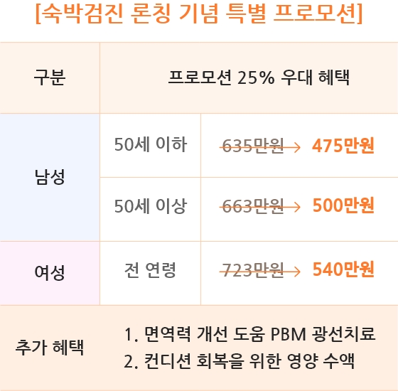 기본: 복부초음파, 헬리코박터 항체, 위내시경, 대장내시경(CO2 통증완화 내시경)